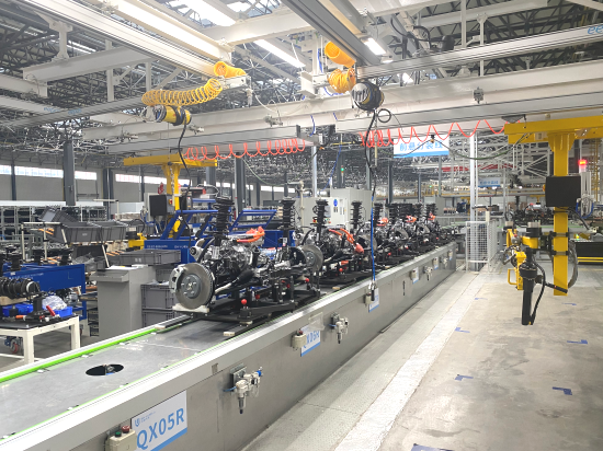 分装线主要完成车身零部件的分装工作,线体有车门分装线、前悬分装线、后悬分装线、仪表分装线等。